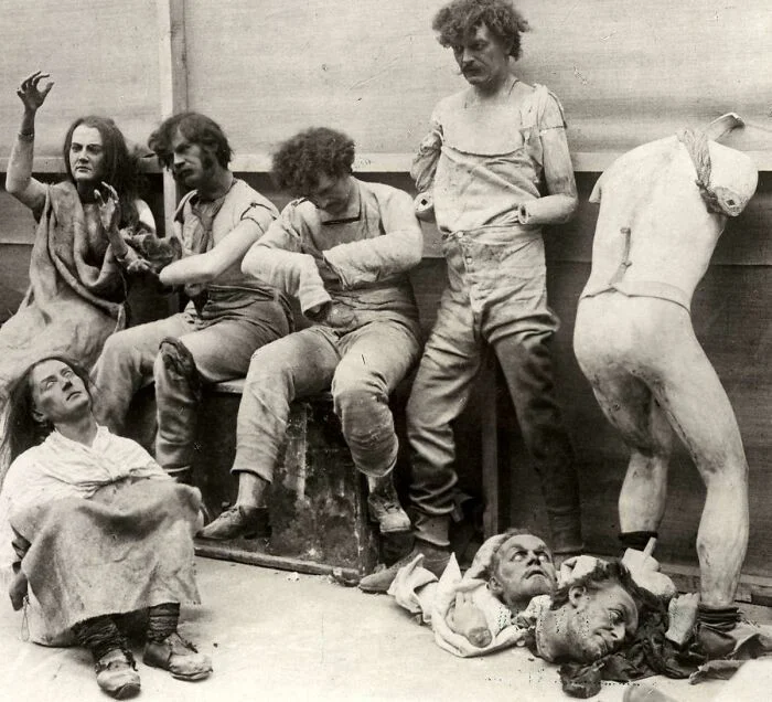 11. Восковые статуи, спасенные после пожара в музее мадам Тюссо, 1925 год.
