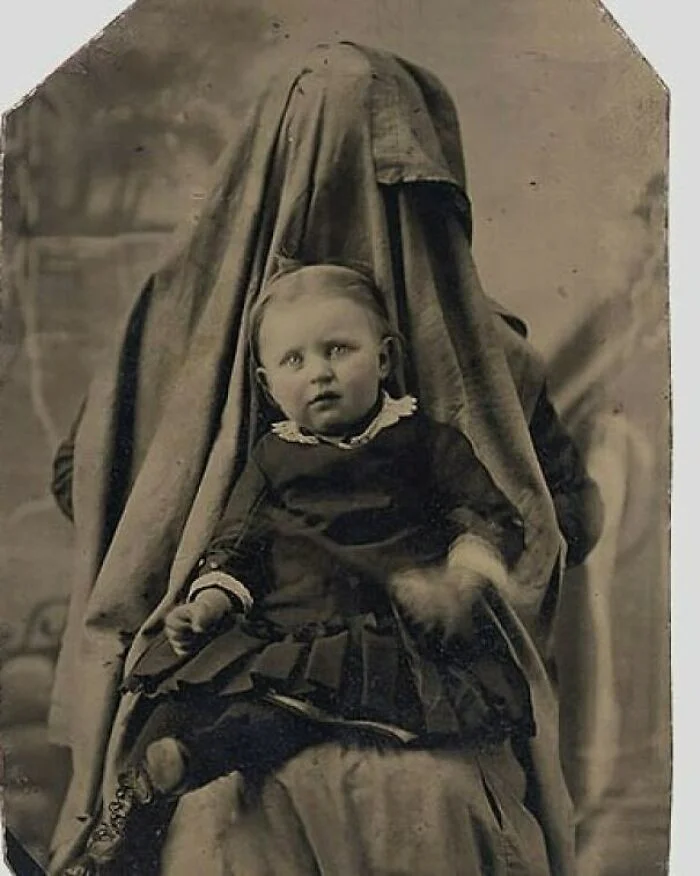 26. Викторианский портрет младенца, сидящего на руках у матери.