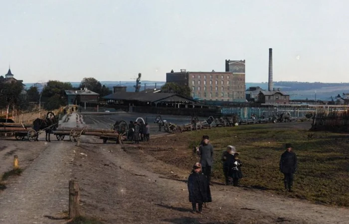 На снимке видна труба, это фабрика Е. Е. Пельтцера. В 1887 году он купил Писчебумажную фабрику купцов Поливановых и переоборудовав ее на сукноделие.