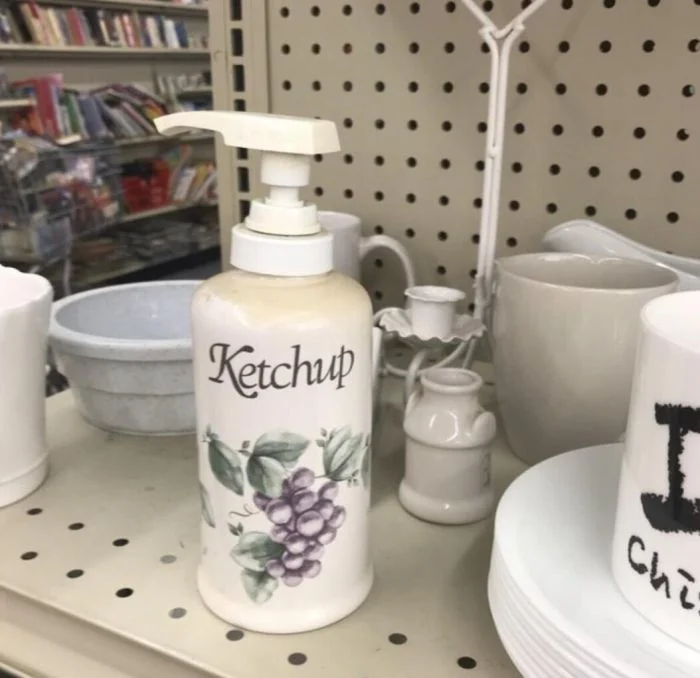 7. Жидкое мыло, а на бутылке надпись "Кетчуп".