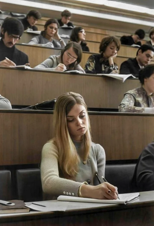 Студенты Московского государственного университета на лекции. Москва, 1972 год.