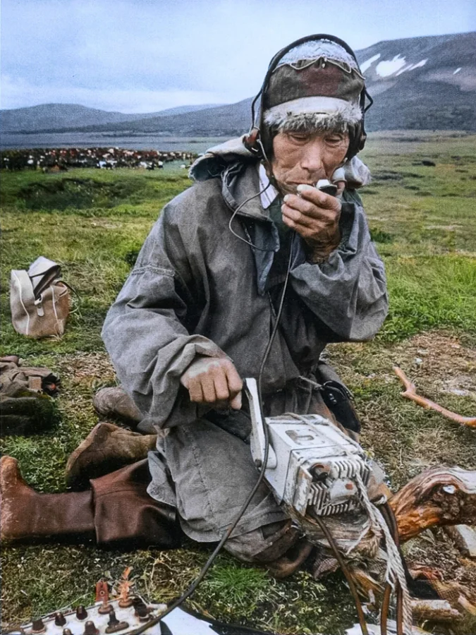 "На связи с посёлком". Камчатка. Пенжинская тундра, 1980 год.