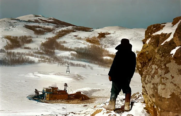 Челябинская область. Трест «Миассзолото». Драга в долине реки Миасс, 1950-е.
