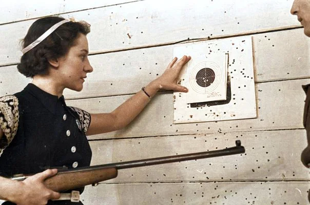 Советская балерина Ольга Лепешинская готова к труду и обороне, 1940 год.