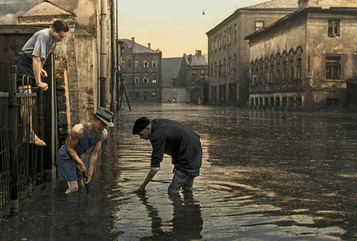 После ливня в Курсовом переулке. Москва, 1949 год.