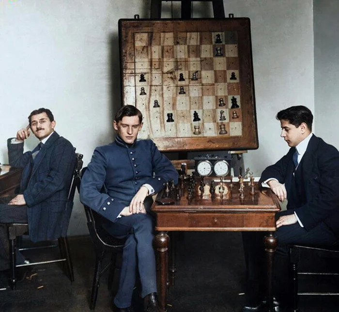 Александр Алехин и Хосе Рауль Капабланка на петербургском шахматном турнире 1914 год.