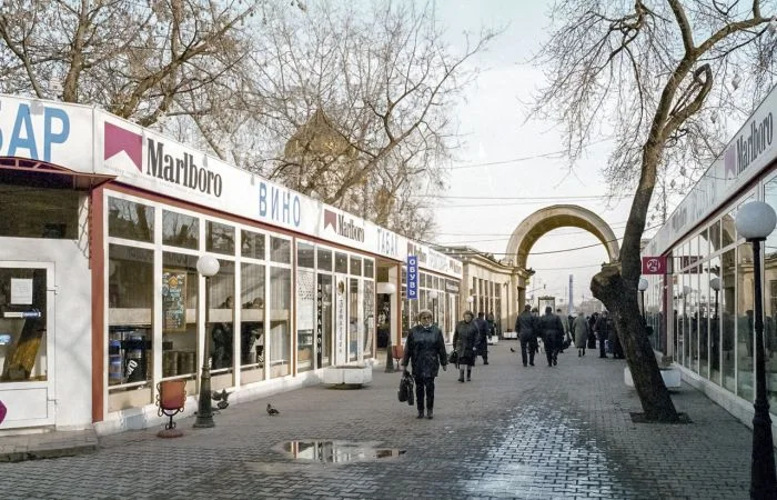 13. 4 апреля 2000 года. Торговые палатки на Гоголевском бульваре, у станции метро "Кропоткинская".