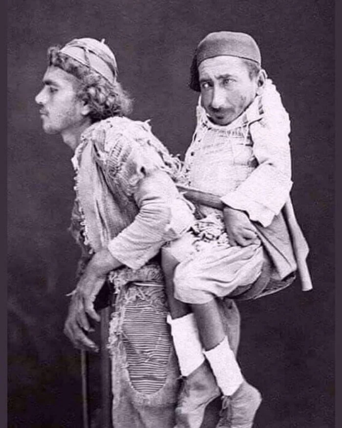 7. Слепой мусульманин по имени Мухаммад несёт своего лучшего друга, парализованного христианина с карликовостью по имени Самир, Дамаск, 1889 год