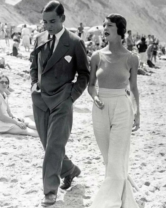 29. Пара прогуливается по пляжу, Нидерланды, 1930-е