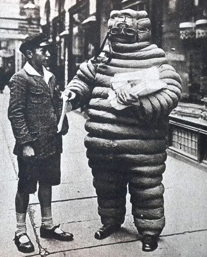 Michelin белого цвета, потому что резиновые шины изначально были серого/белого цвета. Только в 1912 году были подмешаны углеродные химикаты, которые сделали их черными. Благодаря добавлению углерода шины стали более долговечными.Бренд стал отмечать рестораны звёздами, чтобы люди преодолевали большие расстояния на своих автомобилях и быстрее изнашивали шины.Звёзды распределяются так: 1 звезда: "Очень хороший ресторан в своей категории". 2 звезды: "Отличная кухня, стоит посетить". 3 звезды: "Ресторан с исключительной кухней, достойный особого путешествия".