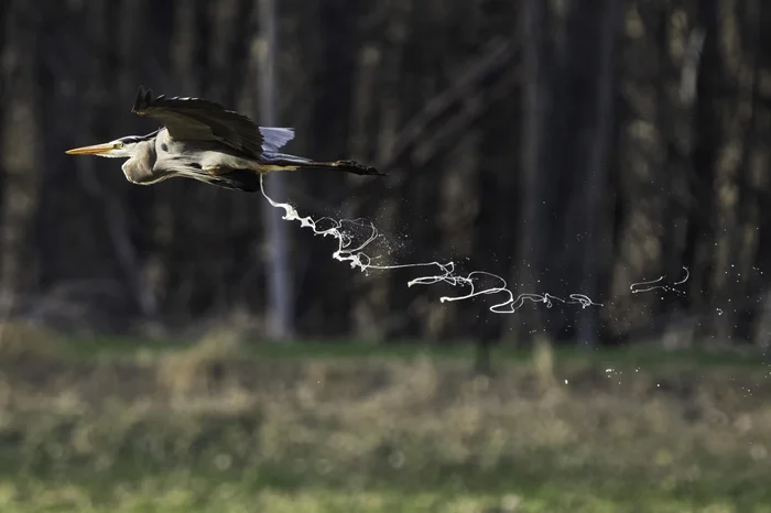 Да нет, просто пролетала большая голубая цапля. Среди всех птиц они славятся тем, что очень много гадят. Голуби вообще грустно в углу рыдают, глядя на нее. А птица красивая.