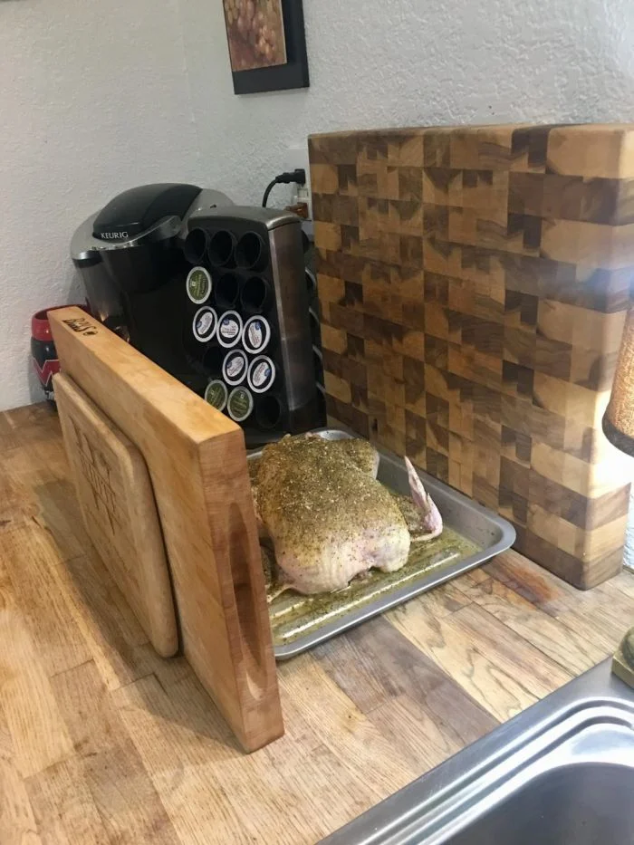 6. Я попросила своего мужа позаботиться о том, чтобы собака не слопала курицу, пока я включала духовку. Он построил эту баррикаду