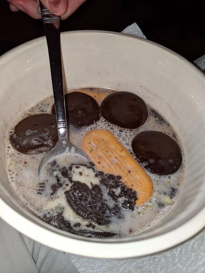 10. Сказала своему парню, что хочу горячего шоколада. Печенье Oрео, мятные конфеты, венское печенье и миндальное молоко, и всё это разогрето в микроволновой печи
