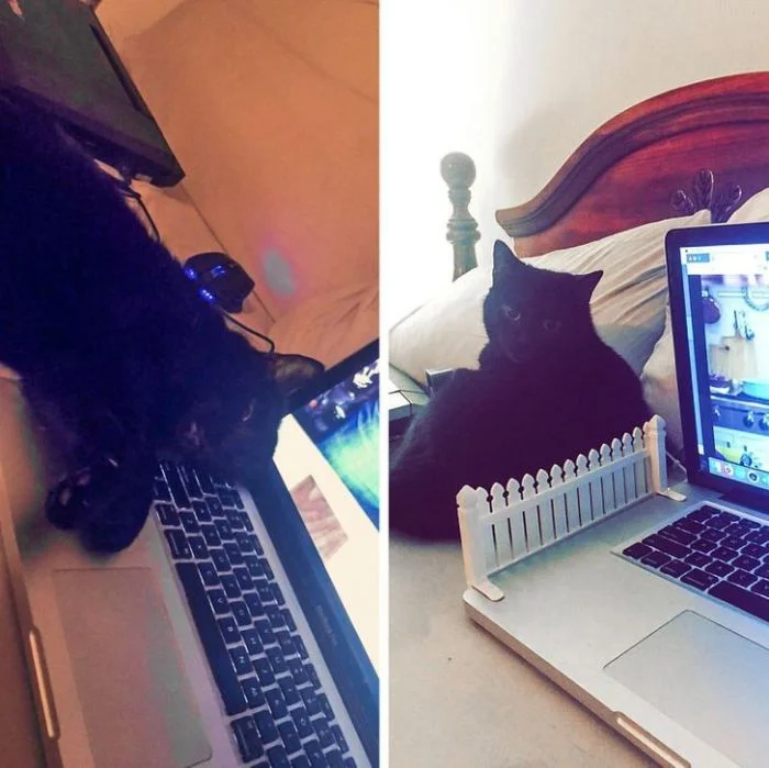 12. Кот всё время укладывался на клавиатуру, мой парень придумал решение этой проблемы