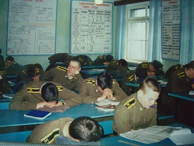 Курсанты 12-й роты 4-го батальона Тюменского высшего военно-инженерного командного училища во время занятий, 1997 год.