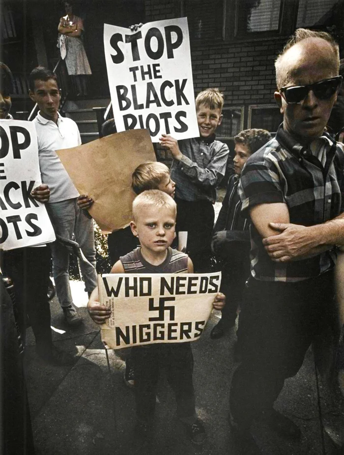 Мальчик с плакатом: "Кому нужны ни**еры", Литл- Рок, штат Арканзас, 1959 год.