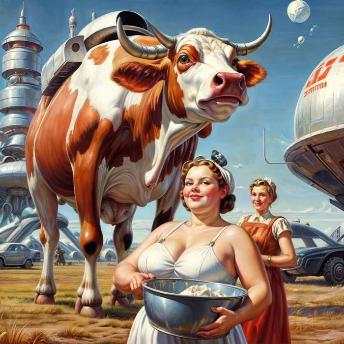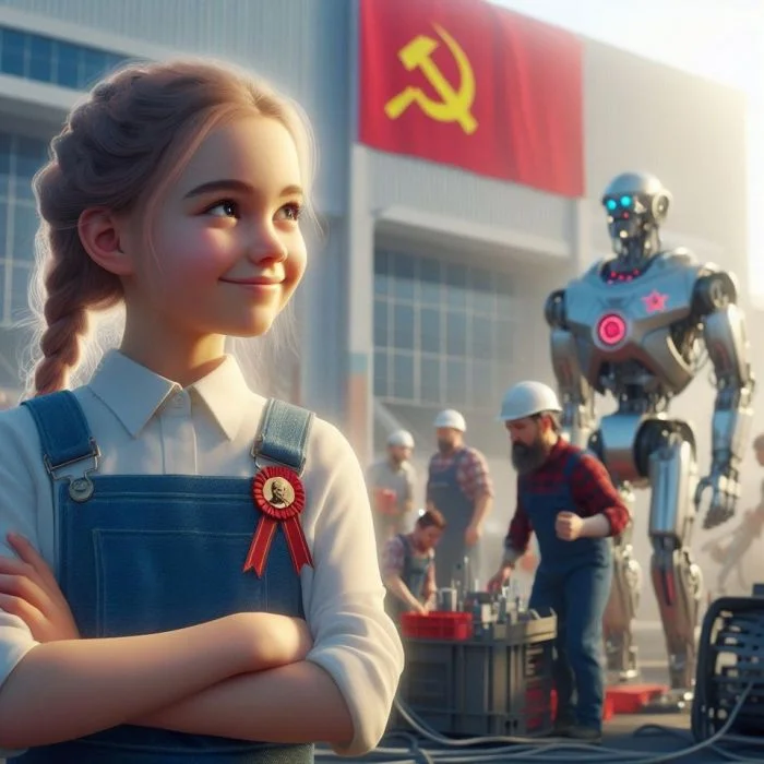 СССР-2061 - это в арт-сообщество СССР-2061. Сами авторы говорят, что они "НЕ про альтернативную историю. И да, мы отлично знаем, что 1991 год таки был. Наш проект вообще не о прошлом, о будущем. Причём таком, в котором хочется жить. Да-да, мы про светлое будущее". Давайте посмотрим, как они это будущее представляют. Всё нарисовано с помощью нейросетей.