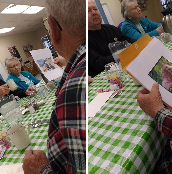 30. "Пошел с дедушкой на местное мероприятие для пожилых людей и увидел, как один из них раздает остальным распечатанные мемы"