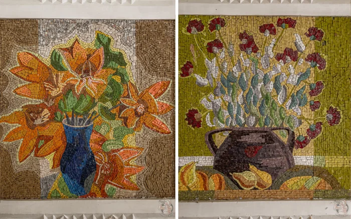 Первые секунды внутри и глаз тут же выделяет из интерьера оригинальные советские мозаики.