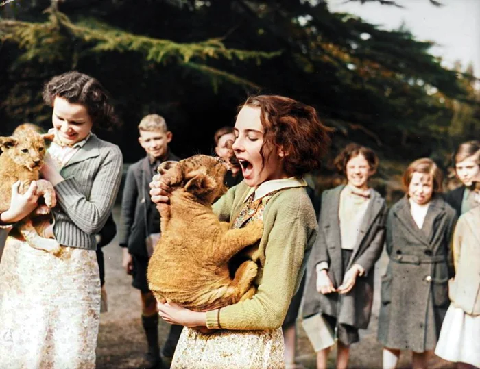 Сестры Моттерсхед взяли львят на воспитание, потому что зоопарк не мог позаботиться о них во время войны. Отец девочек основатель Честерского зоопарка Джорджа, поэтому они с детства знали, как обращаться с дикими животными.