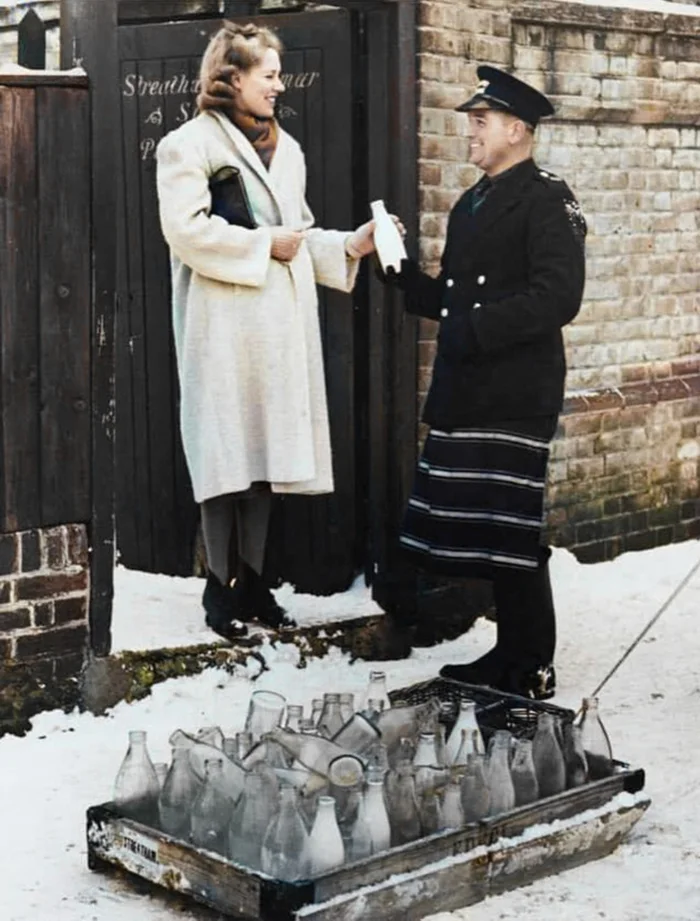 В ХХ веке в Великобритании была весьма популярна доставка молока или соков на дом.