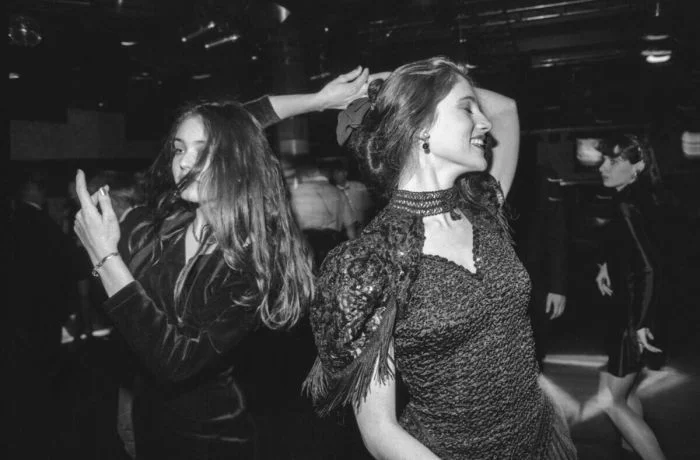 7. Участницы конкурса красоты, организованного английской фирмой «Дайчлет» при спонсорской поддержке Лефко-банка, веселятся в казино «Черри». Москва, 1993 год.