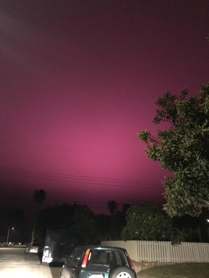 14. "Фиолетовое небо ночью на юге Калифорнии. Держалось минут пять, а потом рассеялось. Что это?"