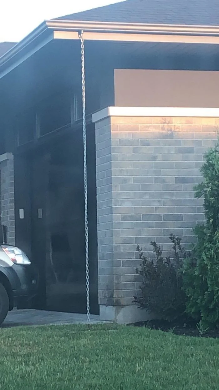 Ответ: "Это водосточная цепь, альтернатива обычным водостокам".