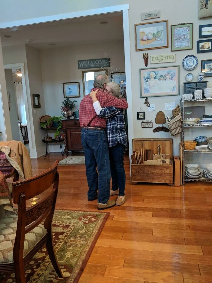 18. "Папа попал в больницу прямо перед Рождеством. Мы не знали, вернется ли он домой вообще, тем более к празднику. На фото они с мамой танцуют под "I'll be home for Christmas" на Рождество"