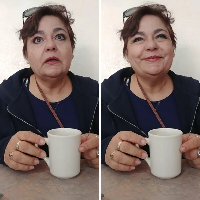 28. Мужчина берет уроки у визажиста, чтобы научиться делать макияж жене до того, как она ослепнет