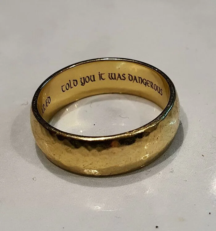33. "Когда я в первый раз сказал жене, что люблю ее, она сказала "Это опасно". Мы поженились год назад, и она сделала на моем кольце надпись "Я же говорила, что это опасно".