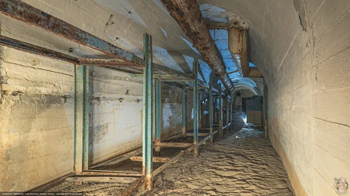Штаб гражданской обороны и кабинет начальника гражданской обороны отличались от остального убежища наличием дощатого пола. В остальном, такой же полукруглый тоннель, разделенный перегородками из кирпича.