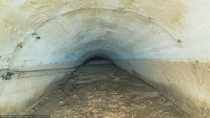 Выглядит он следующим образом. Неприметный лаз в подпорной стенке все ещё частично погребён под завалами. Первые метров тридцать тоннеля идёшь гусиным шагом, шлифуя кепкой свод подходного тоннеля, затем, количество грунта на полу начинает уменьшаться и перед входом в основную часть бункера уже можно встать в полный рост.