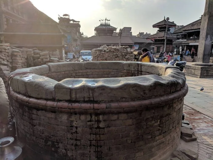 10. Старый колодец в древнем городе Бхактапур в Непале. Верёвки истёрли камень