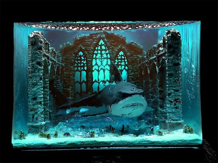 Thalasso hobbyer создает потрясающие диорамы с использованием смолы, в которых искусно сочетает волшебство и опасность, которые таят загадочные глубины океана.