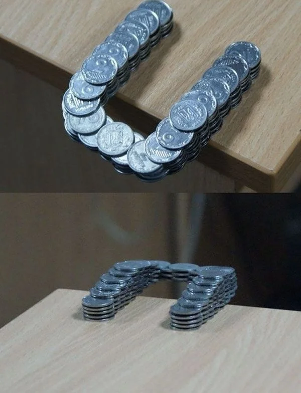 5. Эти монеты не склеены, а просто тщательно сложены: