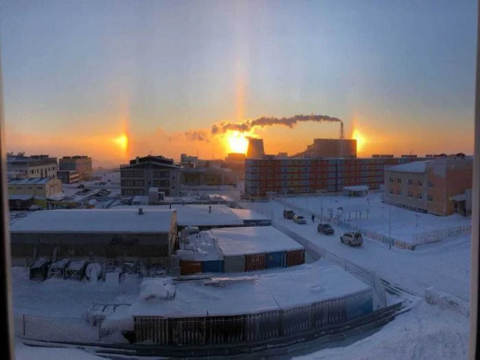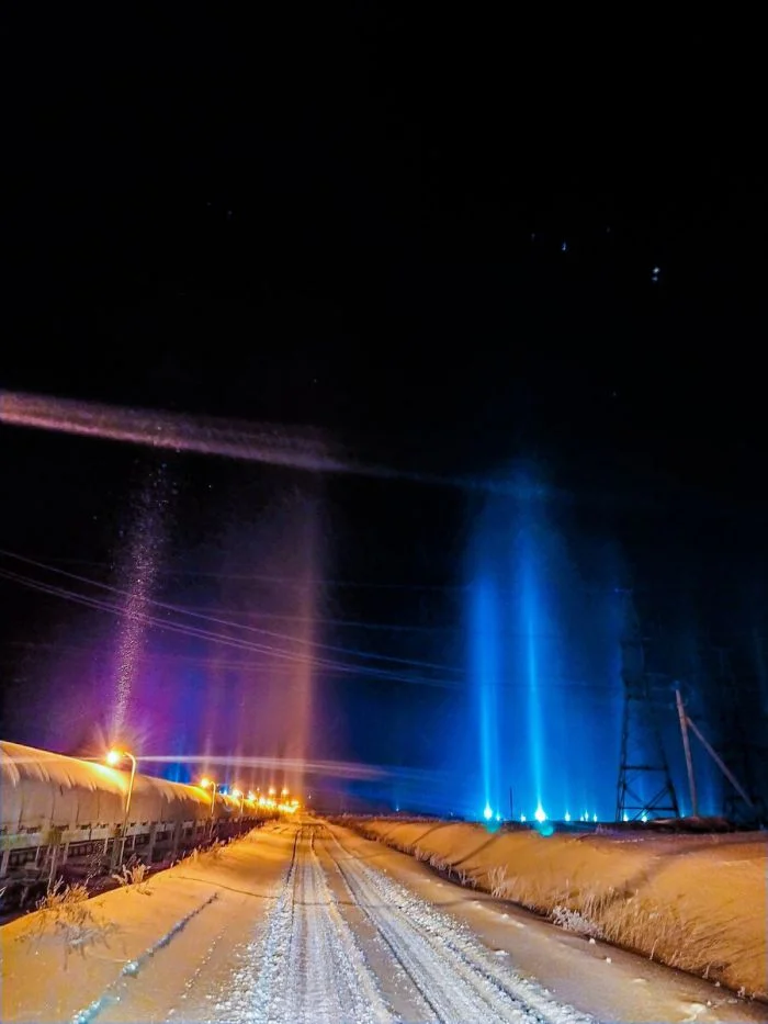 Кажется, что это лучи прожекторов, направленные в небо, но это не так. Подобное явление имеет природное происхождение: при определённых условиях ледяные кристаллы в верхних слоях атмосферы отражают солнечные лучи. Чем холоднее, тем ярче этот эффект.