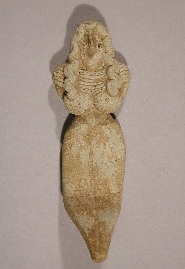 Сидящая богиня-мать, Пакистан (Белуджистан). Скульптура выполнена из глины и имеет размеры 8,6 см на 2,9 см. Экспонат находится в коллекции Метрополитен-музея в Нью-Йорке.