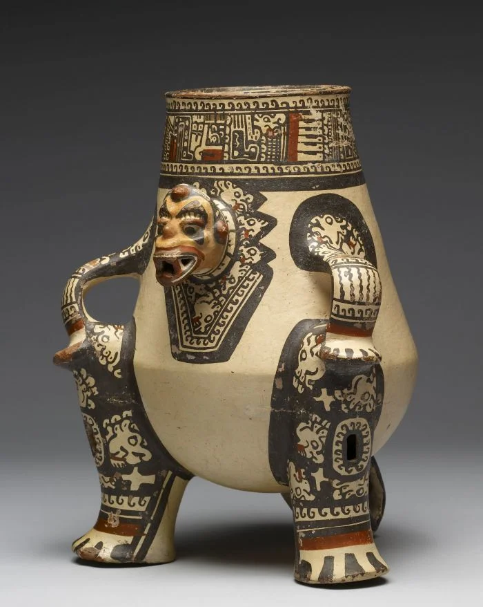 Сосуд с изображением фигуры трансформации человека в животное. Коста-Рика, 1000-1350 гг. н.э. Ёмкость для шаманского жертвоприношения. Этот тип изделия изображает сидящего шамана, превратившегося в своего спутника-духа ягуара. Экспонат художественного музея Уолтерса в Балтиморе.