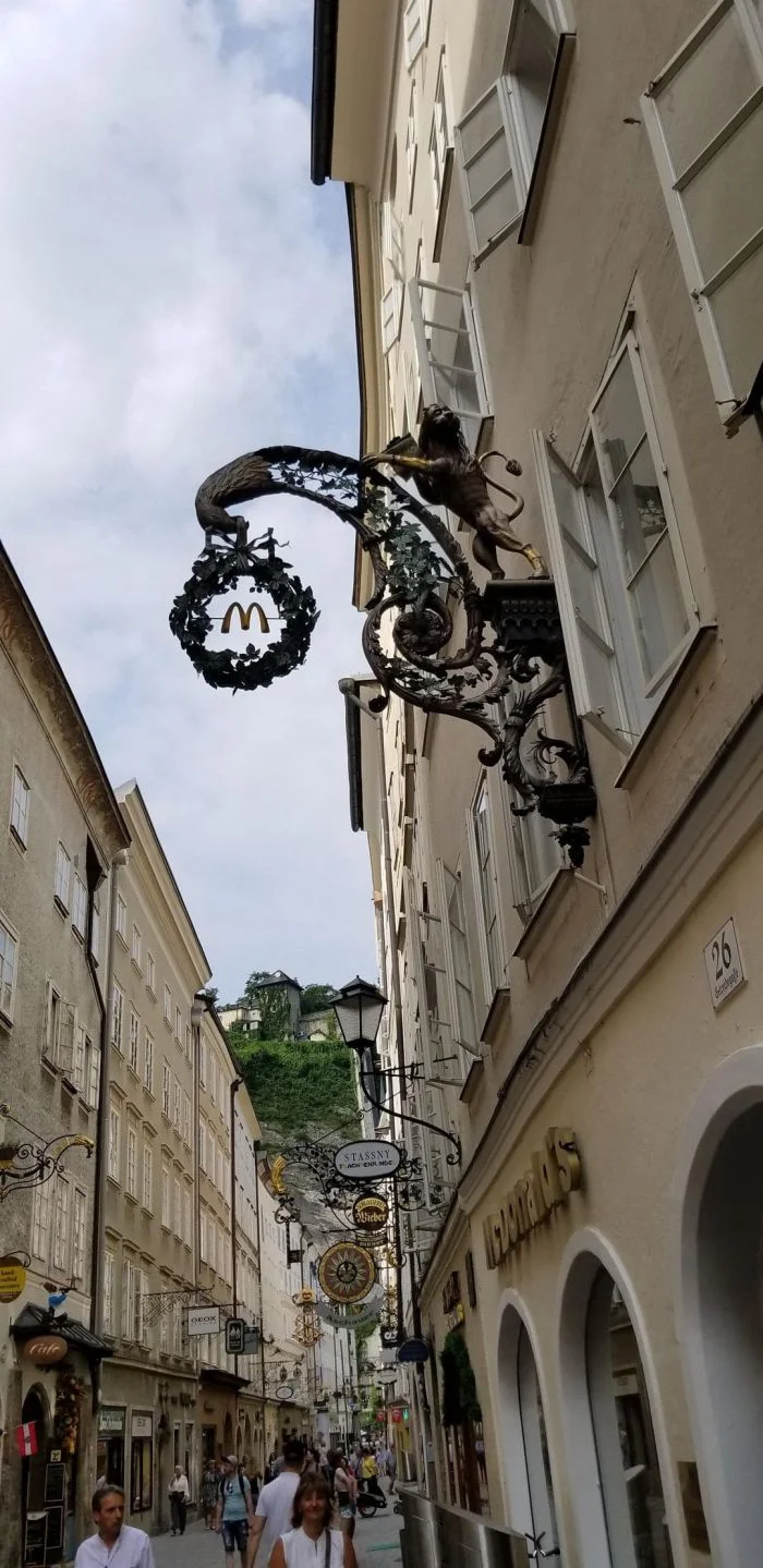Эта вывеска Макдональдса была сделана так, чтобы соответствовать оформлению этой старинной улицы