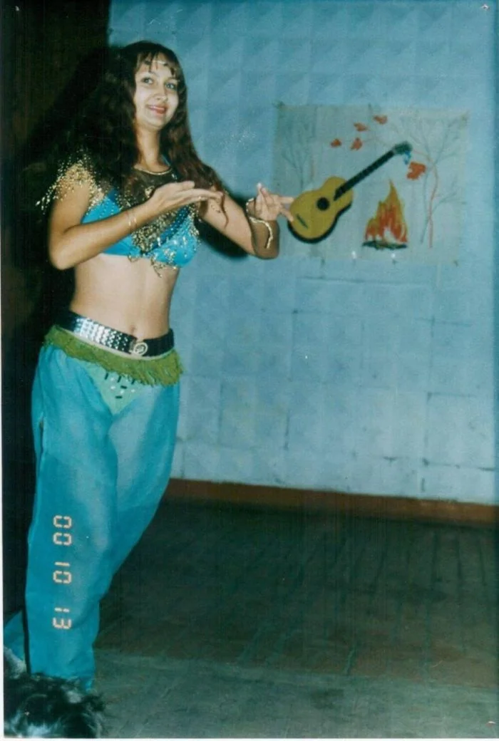 22. Участница конкурса «Мисс осень-2000» показывает танец живота, Алтайский край.