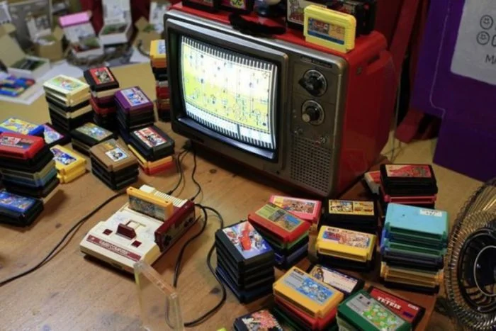 7. Торговцы на рынке Урюпинска перед работой, на фоне стоит стеллаж с видеокассетами, 1990-е годы.