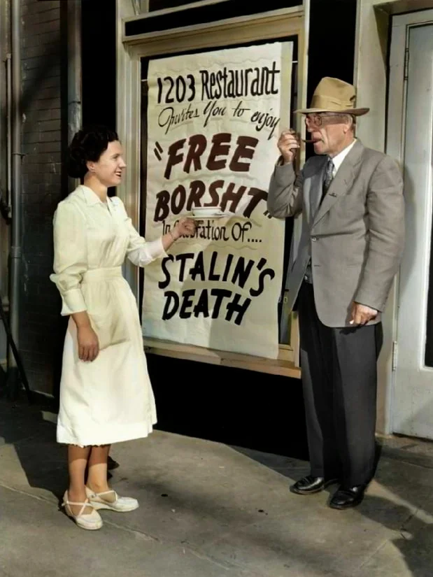 Ресторан «1203» приглашает на бесплатный борщ в честь празднования смерти Сталина. Вашингтон, 1953 год.