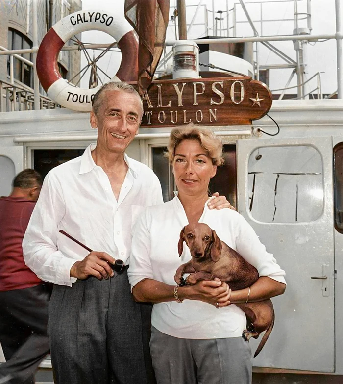Жак-Ив Кусто с супругой и деловым партнёром Симоной (Мельхиор) Кусто на борту корабля «Калипсо», 1959 год.