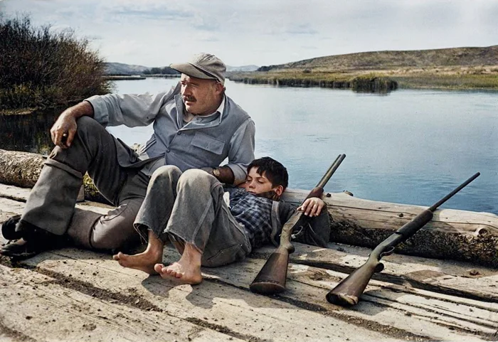 Эрнест Хемингуэй и его сын Грегори на охоте. США, Айдахо, 1941 год.