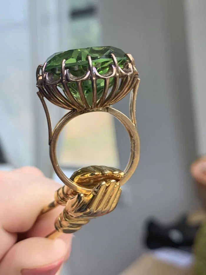 "Узнала, что это золотое изделие ручной работы 60-70-х годов! Кольцо из 14-каратного золота стоит $200+ (камень - стекло). Там же я нашла эти крошечные ручки"