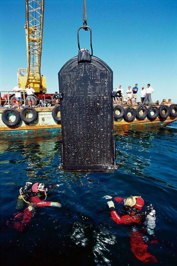 Французский археолог Франк Годьо обнаружил древний город. Учёные прочли название города на чёрной гранитной плите. Здесь же находились останки затонувших кораблей, храмы, здания и множество предметов и личных вещей бывших жителей.