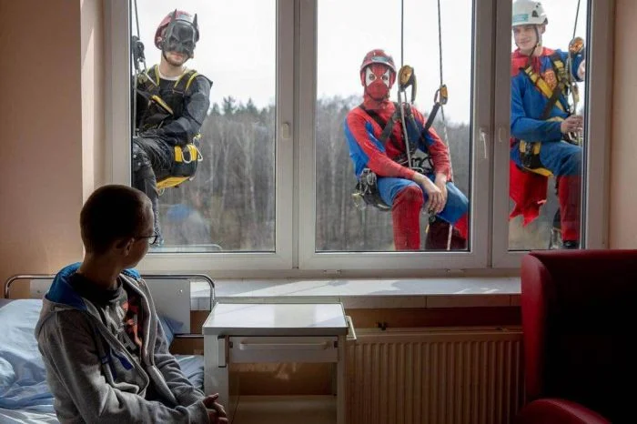 10. «Мойщики окон переодетые в супергероев, чтобы подбодрить пациентов детской больницы»