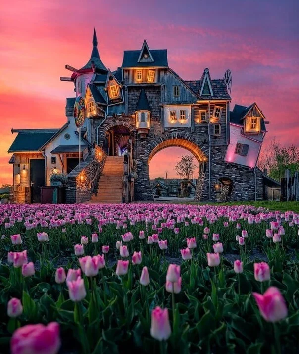 Дом расположен в волшебном лесу, в окружении цветов и необычных деревьев. Волшебство повсюду.