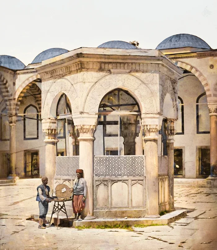 Фонтан для омовения во дворе мечети. Константинополь, Турция, 1855 год.